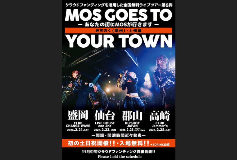 スケジュール更新致しました。 【MOS GOES TO YOUR TOWN 第6弾】は、みちのく・上州編を開催します! 詳細はこちら RSS 「スケジュール更新」FOMARE前の記事 「スケジュール更新」a flood of circle次の記事