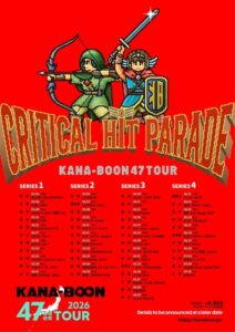 KANA-BOON 4月 19 Sun 2026 コンサート 「KANA-BOON 47都道府県ツアー 2026」 「KANA-BOON 47都道府県ツアー 2026」2026年2月から7月にかけて開催する47都道府県ツアーの詳細が決定しました! ■OPEN/17:30 START/18:00 ■チケット販売開始日:未定 ■前売価格:5800円 ■チケット追記 ドリンク代別途500円 ※3歳以上、チケット必要 ■お問い合わせ先 ・G.I.P. 詳細ページ お問合せはこちら ■オフィシャルサイト 詳細はこちら 前のスケジュール 次のスケジュール